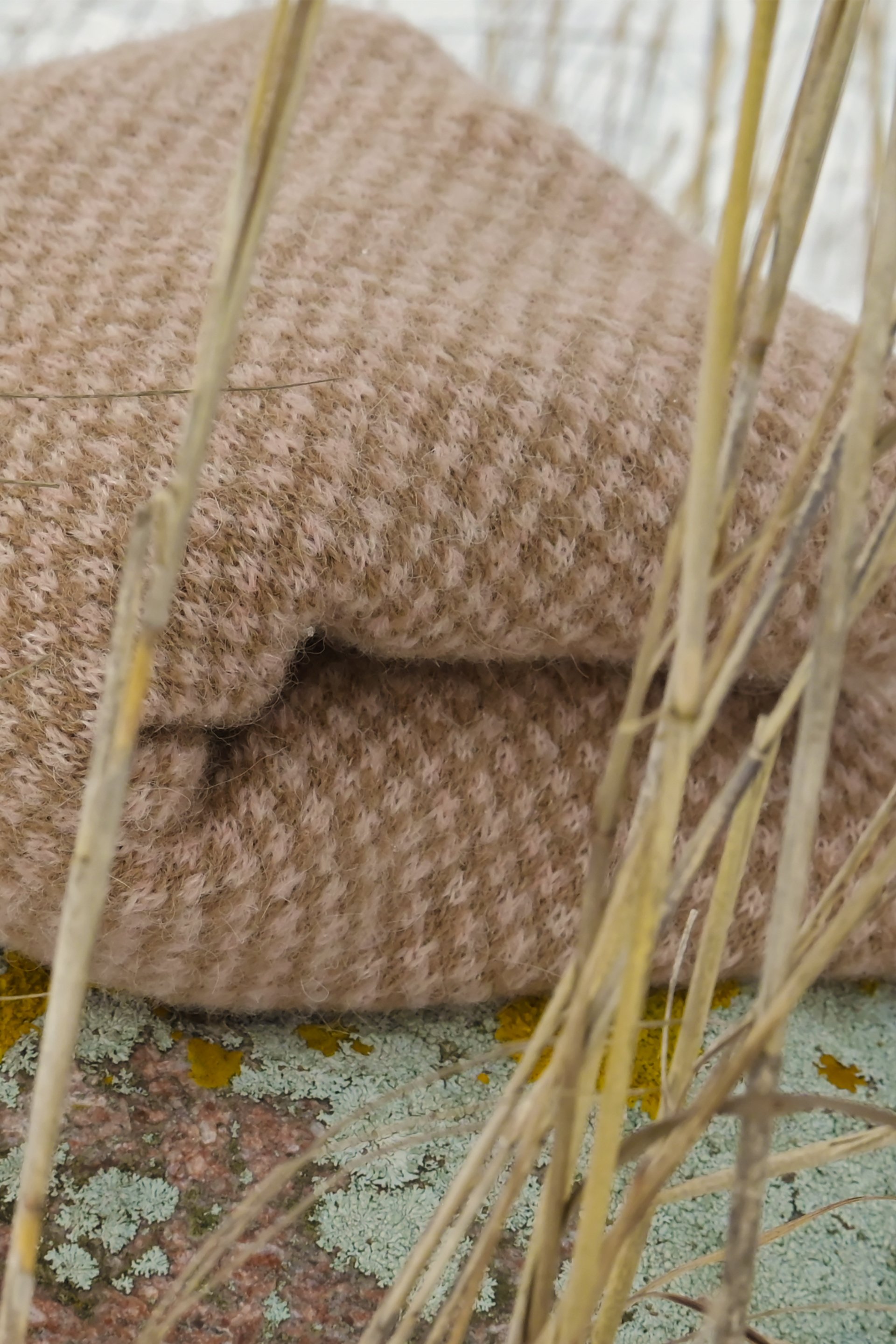 Brushed alpaca is known for its lightweight fluffiness and airy texture — it’s non-itchy, ultra-soft and hypoallergenic, offering excellent insulation while remaining breathable throughout the day.