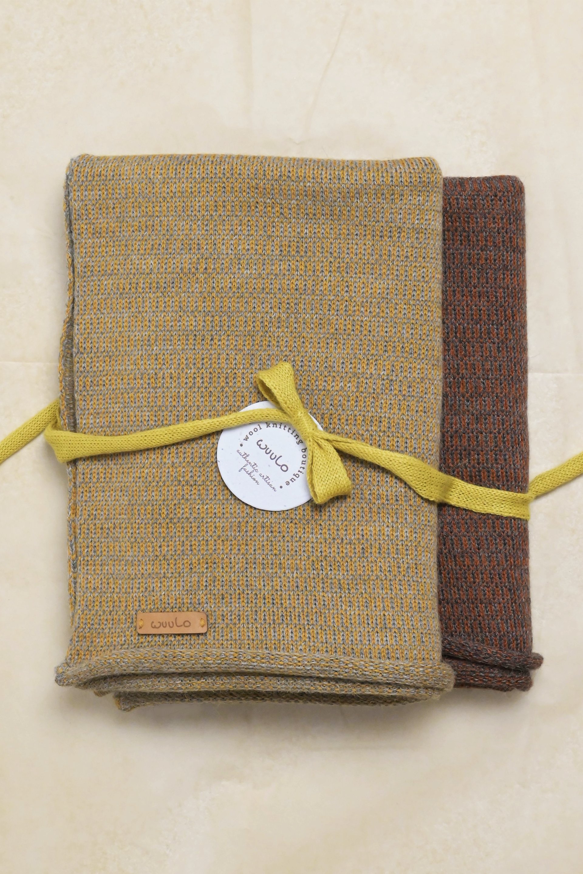 Set of two fine knitted, soft, wide scarf in fair-isle style — designed for the fancy chick who loves cozy.